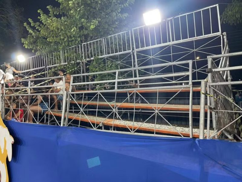 Uma arquibancada do Carnaval Tradição, realizado na Avenida Duarte da Silveira, em João Pessoa, cedeu e os desfiles foram suspentos, na noite desta segunda-feira (16). A suspeita é de superlotação. Ninguém se feriu.