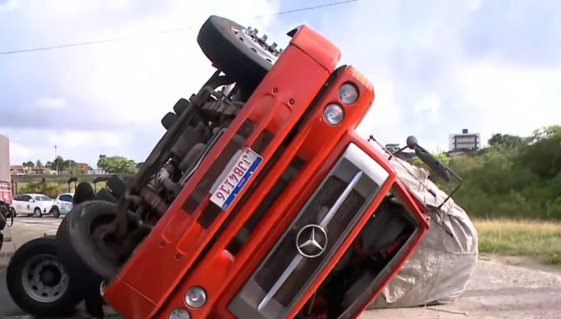 O motorista informou, em entrevista à TV Arapuan, que seguia em baixa velocidade quando uma das peças quebrou ao fazer a curva do viaduto para acessar a BR.