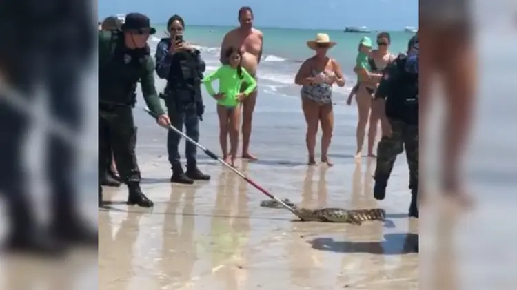 As autoridades seguem na região em busca de outros dois jacarés que também foram avistados na beira-mar de Camboinha.