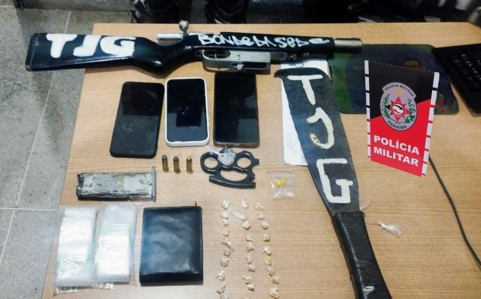 “A apreensão foi realizada durante rondas, quando a viatura percebeu que suspeitos entraram rapidamente na sede ao notarem a presença da PM. Na revista, a arma foi localizada enrolada em um pano e os entorpecentes e outros materiais estavam escondidos em um fogão”, informou a PM.